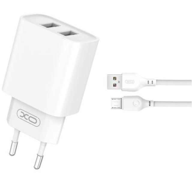 XO CE02C Зарядное устройство 2xUSB 2.1A + MICRO USB кабель 1m