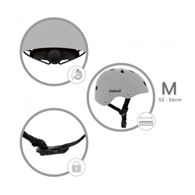 Bērnu aizsargķivere Kidwell ORIX II velosipēdiem, skrituļslidām un skrejriteņiem! Lai ķivere būtu efektīva un droša, tai vispirms ir JĀBŪT uz bērna galvas! Nodrošiniet savam bērnam maksimālu aizsardzību un drošību ar Kidwell ķiveri! Izturīgs polipropilēna korpuss - absorbē trieciena enerģiju. Šis ir pirmais Kidwell ORIX II ķiveres aizsardzības līmenis. Ērta sistēma roktura apkārtmēra regulēšanai ļaus labāk piegulēt ķiverei - no 52 līdz 56 cm.Regulējamā siksna ar spēcīgu sprādzi nodrošinās uzticamu un stabilu ķiveres lietošanu. Siksniņas izgatavotas no mīksta, taustei patīkama materiāla, nekairina mazuļa ādu. Plaša regulēšanas sistēma ļaus ķiveri lietot ilgu laiku. areizi piestiprināta ķivere ir ne tikai ērta, bet arī droša. Veiciet testu - uzvelciet un piestipriniet ķiveri uz bērna galvas, uzlieciet tai roku un palūdziet bērnam pagriezt galvu no vienas puses uz otru. Ja ķivere pieguļ pareizi, tā nepārvietosies uz bērna galvas, neskatoties uz jūsu rokas pretestību. EPS ieliktnis ir paredzēts, lai absorbētu pēc iespējas vairāk triecienu. Tas reducē trieciena spēku, aizsargājot ne tikai galvu, bet arī mugurkaula kakla augšējo daļu. Mīkstais polsterējums uzlabo valkāšanas komfortu un nodrošina labāku ķiveres piegulšanu. Pateicoties Velcro aizdarei, ķiveri ir viegli noņemt un iztīrīt, saglabājot galvas ādu svaigu un higiēnisku. Ķiveres konstrukcija sniedz bērnam plašu redzamības lauku, nodrošinot drošu un ērtu braukšanu. ORIX II ķivere atbilst visām drošības prasībām un atbilst standartam EN 1078. Tai ir CE sertifikāts un SGS drošības sertifikāts. SPECIFIKĀCIJA: Materiāli: PP apvalks, EPS oderējums, PU putu polsterējums. Produkta svars: 360g Izmērs: M - 52-56 cm Komplektā: Ķivere, instrukcija poļu, angļu, vācu valodā. EAN: 5901130099023 PADOMI: Ķiverei jābūt pareizā izmēra, pareizi valkātai un nostiprinātai uz galvas. Lai izvēlētos pareizo ķiveres izmēru, jāmēra bērna galvas apkārtmēru virs uzacīm, kā parādīts attēlā zemāk. Pirms ķiveres uzvilkšanas izlasiet lietošanas instrukciju.