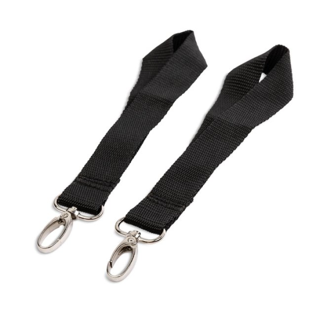 Universālie āķi ļauj ātri un viegli piestiprināt jebkuru somu pie ratiņiem. Vienkārši izvelciet klipsi cauri ratiņu rokturim un izvelciet siksnu cauri cilpai. Šie āķi ļaus ērti novietot somu uz ratiņiem.