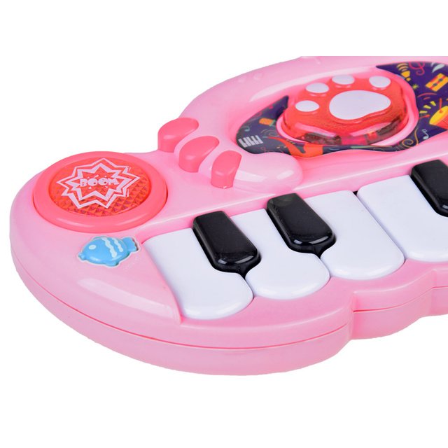 Krāsainas interaktīvās klavieres bērniem iepriecinās ikvienu mazo mūziķi. Rotaļlieta ir rūpīgi izstrādāta, pievēršot uzmanību detaļām, un tās mazais izmērs veicina spēlēšanos. Pateicoties daudzām funkcijām, klavieres stimulē bērna dažādās maņas.Klavierēm ir vairāki režīmi, kurus maina, nospiežot pogas uz paneļa. Izgaismotas pogas rada bungu un šķīvju skaņas. Rozā zivs ir atbildīga par īsām, jautrām melodijām ar apaļo pogu izgaismojumu. Melnbaltie taustiņi atveido gammas pamata skaņas. Katrai taustiņa nospiešanai ir pievienots fona apgaismojums, kas atrodas rotaļlietas panelī. Rotaļlieta ir aprīkota ar elementiem, kas attīsta bērna rokas prasmes, precīzi nospiežot taustiņus. Klavieru izmēri: 22 x 12 x 3,5 cm. Barošanas avots: 2 x 1,5 V AA (nav iekļauts). Pateicoties tās dažādajām funkcijām, rotaļlieta nodrošina daudzas jautras izklaides stundas. Mūzika attīsta bērna jutīgumu, un deja atbalsta motoriku un muskuļu efektivitāti. Kompaktais izmērs padara klavieres ideāli piemērotas lietošanai mājās vai ceļojumā. Rotaļlieta ir iepakota estētiski pievilcīgā, krāsainā kastītē – ideāli piemērota dāvanai.