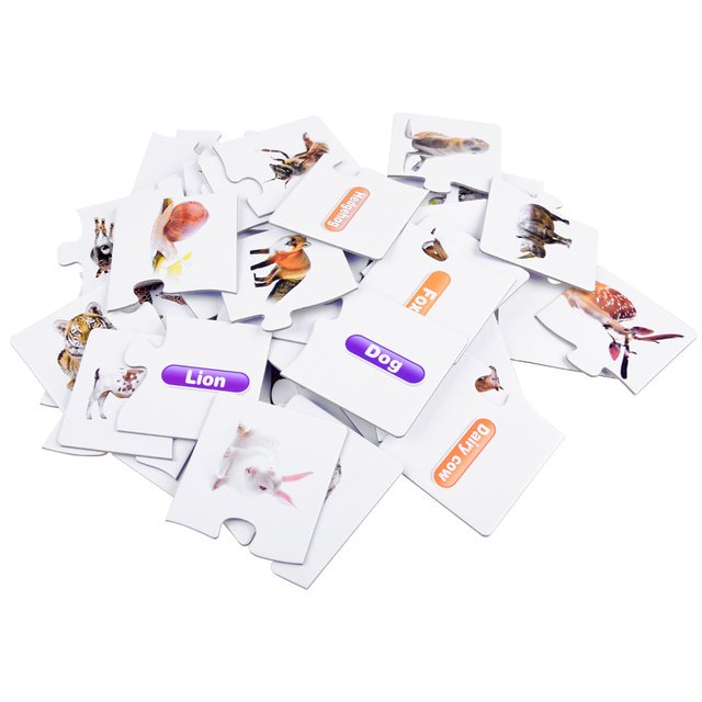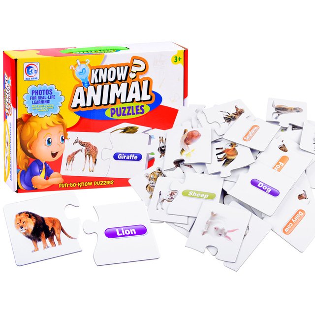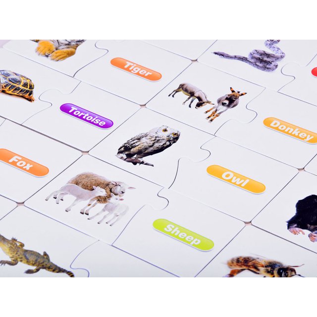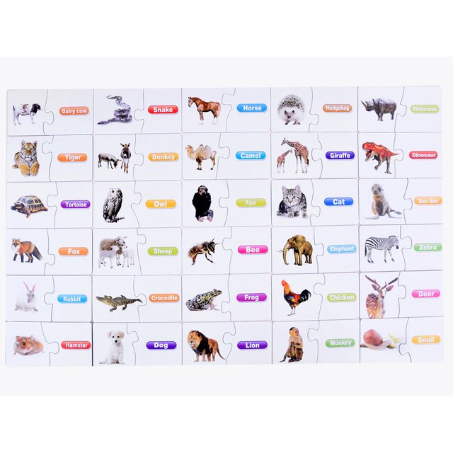 Bērna uzdevums ir saskaņot atbilstošo attēlu ar dzīvnieka vārdu -vārds ir angļu valodā. Šis komplekts attīsta bērna mācīšanās spējas un loģisko domāšanu, palīdz viņam uzzināt par dzīvniekiem un apgūt angļu valodu.