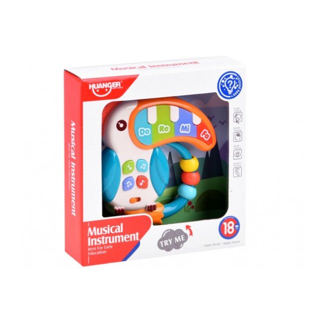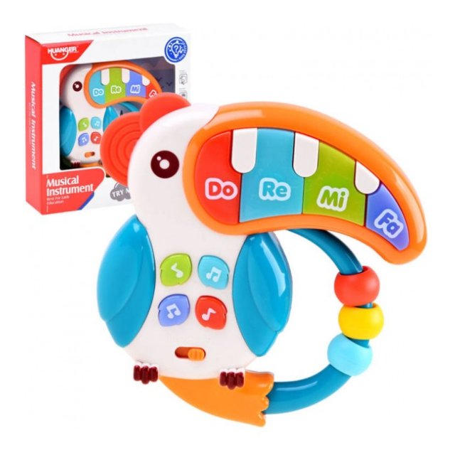 Tukāns ir interaktīva rotaļlieta ar krāsainām pogām, krellēm un jautru izskatu. Rotaļu klavieres ir pilnībā izgatavotas no plastmasas pievilcīgās košās krāsās.