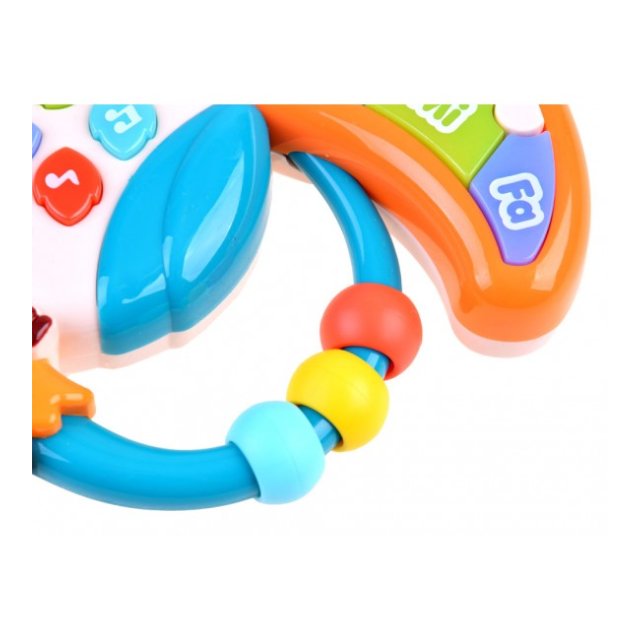 - apakšā ir četras daudzkrāsainas pogas ar notīm, kas atskaņo jautras un mierīgas melodijas, putnu skaņas,