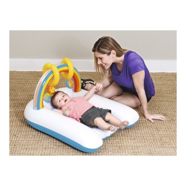 Pārnēsājamais piepūšamais pārtinamais galdiņš ir lieliski piemērots ceļošanai, atpūtai pludmalē vai noderēs garā ceļojumā, nodrošinot ērtu un vieglu pārģērbšanos Jūsu mazulim. Salocītā veidā galds ir viegls un neaizņem daudz vietas somā, to var paņemt līdzi gandrīz jebkur. Pārtinamais galds ir izgatavots no izturīga, pārbaudīta vinila, un tam ir drošības vārsti. Dažkārt ir grūti pārliecināt bērnu mierīgi apgulties, it īpaši, ja viņš ir noguris pēc ceļojuma. Tāpēc uz pārtinamā galda bērns atradīs loku ar diviem pīkstuļiem. Interesantas krāsas un bagātīgas krāsas noteikti piesaistīs mazuļa uzmanību. Iekļauts: - piepūšamais pārtinamais galds ar izmēriem 81cm x 63cm x 46cm - remonta plāksteris Paredzēts bērniem līdz 2 gadu vecumam.