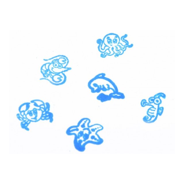 Jauku jūras dzīvnieku zīmogu komplekts ir ideāla ideja, ar ko bērns var spēlēties. Tā lieliski piemērota mājās un bērnudārzā radošo spēļu laikā. Zīmogs izgatavots no izturīgas plastmasas un piesūcināts ar tinti, gatavs lietošanai. Nepieciešama tikai papīra lapa, un jūsu mazulis varēs uzburt ar ūdenstilpņu iemītniekiem. Stingri piespiediet zīmogu pie lapas vai pastkartes un ir gatavs!