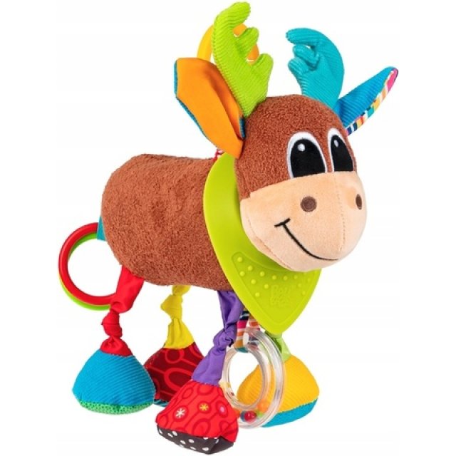 Šis burvīgais alnis ir aprīkots ar praktisku graužamo bandanas formā ar izvirzījumiem, kas atvieglos mazuļa zobu nākšanu.