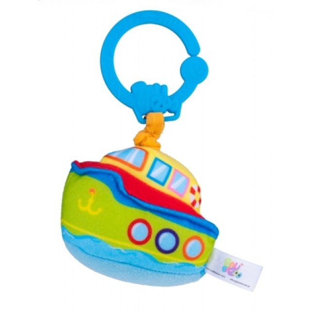 Pasakaini krāsainais plīša kuģis sniegs mazulim lielisku izklaidi un padarīs pastaigu vēl patīkamāku. Jūsu bērnam atliek tikai to novilkt, un kuģis pacelsies uz lentes, radot jautru vibrējošu skaņu.
