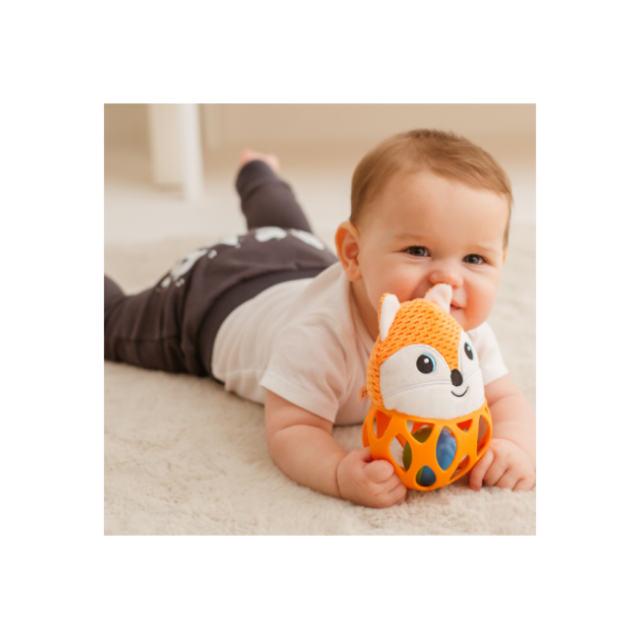Plīša lapsa ir rotaļlieta "trīs vienā". Pūkainā lapsas galva rotā mīkstu bumbiņu, kuras iekšpusē ir grabulis. Bumbiņa ir izgatavota no elastīga materiāla, un tai ir ērti caurumi, lai mazajām rokām būtu vieglāk paņemt rotaļlietu. Lapsa ir izgatavota no materiāliem ar dažādām faktūrām, un tās ausis jocīgi čaukst. Produkts paredzēts bērniem no dzimšanas.