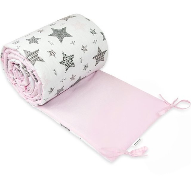 Paredzēta gultai 120x60 cm . 100% kokvilna , pildījums - nealerģiskās poliestera vai silikona šķiedras . Ražots Polijā.   Apmales bērnu gultiņām ir plakani, mīksti un gari spilveni, kurus var piestiprināt ap gultiņas perimetru. Kam tie paredzēti: - aizsardzība pret traumām. Kad mazulis sāk rāpot un rotaļāties gultiņā, pastāv traumu risks, bērns var izbāzt rokas vai kājas caur šķērsstieņiem gultas sienā un nodarīt sev sāpes.Sāni aizsargā pret šādiem gadījumiem, - aizsardzība pret caurvēju un putekļiem, - izklaides funkcija, pozitīva psiholoģiskā attīstība. Interesanti zīmējumi un attēli piesaista uzmanību un nomierina mazuli. Viņš pētīs krāsas, zīmējumus, kas pozitīvi ietekmēs attīstību, - aizsardzība pret ārējiem faktoriem. Apmale aizver mazulim skatu no ārpus notiekošā, lai netraucētu saldo miegu. Tādējādi šis aksesuārs ir diezgan noderīgs bērna guļamistabā. Pateicoties viņam, jūs varat izveidot  savam mazulim mājīgu "ligzdiņu".
