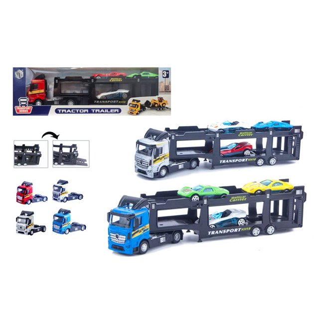 Liels kravas automobilis ar piekabi automašīnu pārvadāšanai. Komplektā ir vairākas krāsainas mašīnas. Kustīgi elementi padara spēli aizraujošāku.