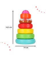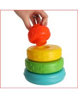 Apļi ir pietiekami lieli, lai ar rotaļlietu varētu spēlēties pat bērni, kas ir vecāki par gadu. Katrs krāsainās piramīdas elements ir izgatavots no izturīgas plastmasas. Turklāt blokiem ir gluda virsma - tiem nav asu malu, kas padara tos droši spēlējamus!