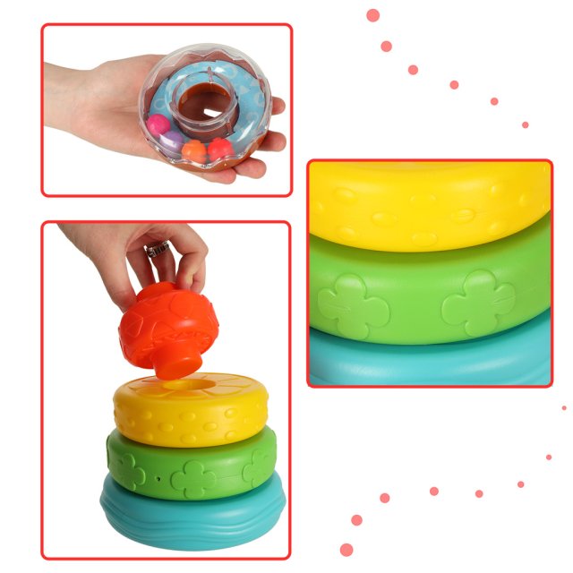 -manuālās prasmes – apaļo kubu celšana, pārvietošana un kārtošana prasīs mazulim attīstīt sīko motoriku un mazo pirkstiņu precizitāti. Turklāt, pateicoties spēlei, bērns attīstīs arī roku-acu koordināciju,- radošums - izteiksmīgas krāsas, interesantas faktūras un mazas bumbiņas viena apļa centrā lieliski ietekmēs bērna maņas - redzi, dzirdi un tausti - un stimulēs radošo domāšanu un iztēli,