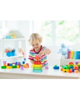 - kritiskā domāšana – pateicoties rotaļlietai, mazulis iegūs noderīgas problēmu risināšanas prasmes. Kad nav iespējams uzbūvēt torni, bērns varēs izmēģināt daudzas reizes, kas iemācīs viņam patstāvību un atjautību,