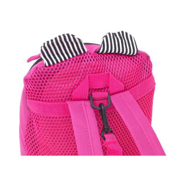 Burvīga mugursoma mīļa lāča formā ar ausīm. Mugursomai ir pavadiņa, kas ļauj kontrolēt bērna iešanas tempu un virzienu. Mugursoma ar vienu kabatu ar rāvējslēdzēju. Plašajā galvenajā nodalījumā var ievietot visu, kas mazajam vajadzīgs bērnudārzā vai ceļojumā: grāmatu, dzēriena pudeli, uzkodu vai iecienītāko rotaļlietu. Regulējamas plecu siksnas atvieglo mugursomas pielāgošanu bērna augumam. Mugursomas izmēri: 27 cm x 21 cm x 11 cm. Pavadas garums: 77 cm Materiāls: poliesters