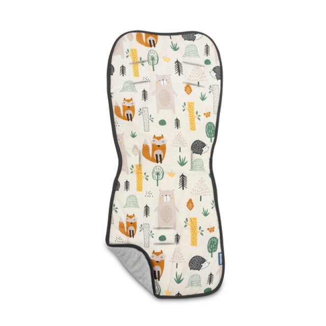 Ratiņu ieliktnis vienā pusē ir izklāts ar 100% kokvilnu, bet no otras – gludu, taustei patīkamu Minky materiālu. Ieliktnis ir mīksts, bet tajā pašā laikā nesamazina sēdekli. Tam ir caurumi siksnām, tāpēc der jebkuriem ratiem. Papildus praktiskai funkcijai aizsargāt pret netīrumiem un palielināt komfortu pastaigu laikā, ieliktnis arī atdzīvinās ratu interjeru, piešķirot tiem unikālu raksturu.