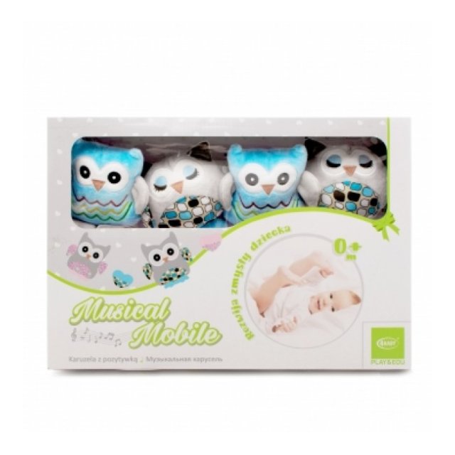 Plīša karuselis ir ideāls produkts mazulim, lai atvieglotu viņa aizmigšanu. Jaukas pūces piesaistīs bērna uzmanību, un mūzikas kastes skaņas nomierinās un palīdzēs aizmigt. Karuselis ir viegli uzstādāms uz gultas. Patīkamas taustei, noņemamās rotaļlietas modina zinātkāri, mūzikas skaņas un rotaļlietu kustība attīsta dzirdi un redzi. Rotaļlieta atbalsta bērna sensoro attīstību.