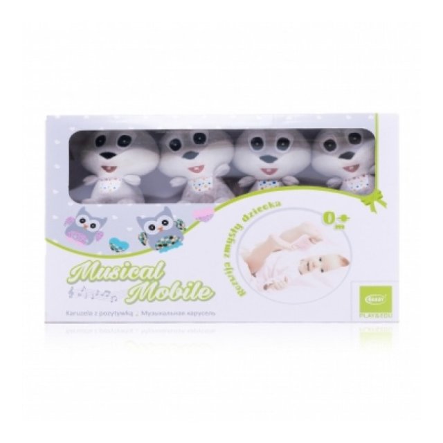 Plīša karuselis ir ideāls produkts mazulim, lai atvieglotu viņa aizmigšanu. Jaukas pūces piesaistīs bērna uzmanību, un mūzikas kastes skaņas nomierinās un palīdzēs aizmigt. Karuselis ir viegli uzstādāms uz gultas. Patīkamas taustei, noņemamās rotaļlietas modina zinātkāri, mūzikas skaņas un rotaļlietu kustība attīsta dzirdi un redzi. Rotaļlieta atbalsta bērna sensoro attīstību. Mehāniskajai mūzikas kastei nav nepieciešamas baterijas. Ideāli piemērots dāvanai. Bērna vecums: 0m+