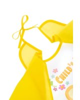Priekšautu ir viegli uzturēt tīru. Vienkārši nomazgājiet to siltā ūdenī ar bērnu ziepēm uzreiz pēc ēšanas.