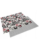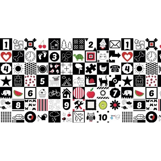 Paklājiņš ir abpusējs - var brīvi mainīt puses. Puse ar melnbaltiem kontrastējošiem rakstiem ir īpaši izveidota pašiem mazākajiem bērniem - jaundzimušajiem un zīdaiņiem. Tieši šīs krāsas viņiem ir visinteresantākās. Paklājiņš ir pietiekami izturīgs, lai to varētu lietot no jaundzimušā visa skolas laika! Attīstošāis paklājiņš atbilst visiem Eiropas drošības standartiem.