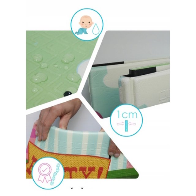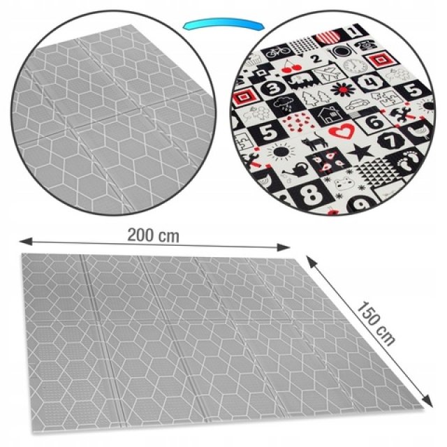 Ērts un funkcionāls: salokāms un grozāms, viegli tīrāms, ūdensizturīgs un viegls, nodrošina siltumizolāciju no zemes, attīsta bērna rupjo un smalko motoriku.