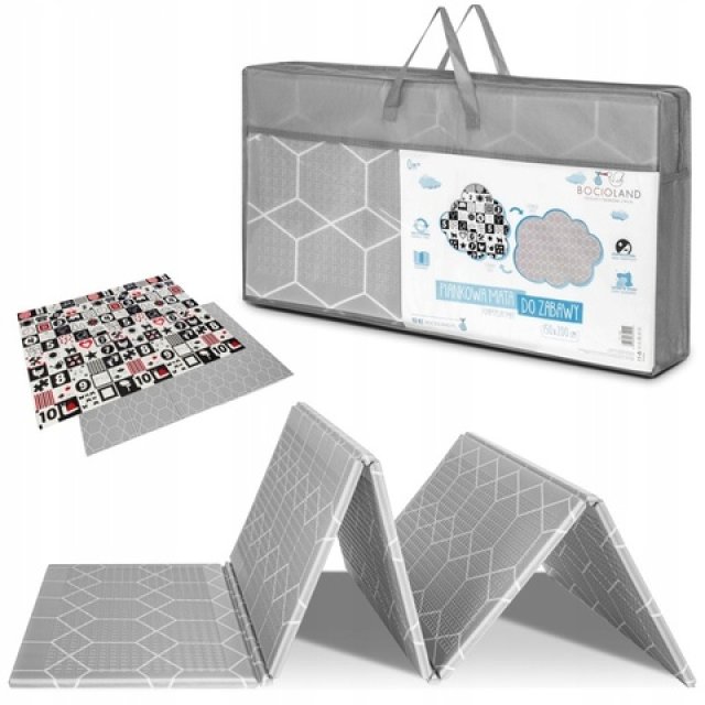 Saliekams bērnu paklājs ir modelis, kas lieliski der gan mājās, gan ceļojumā. Pateicoties saliekamajam dizainam, tas aizņem ļoti maz vietas. Komplektā soma – pateicoties iekļautajai somai, varat būt drošs, ka paklājiņš transportēšanas laikā nepaliks netīrs.