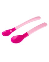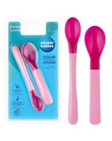 Šis bērnu karotīšu komplekts ir lieliska izvēle, paplašinot mazuļa ēdienkarti. Kad ēdiena temperatūra pārsniedz 40 °C, karotītes maina krāsu, palīdzot kontrolēt pareizu ēdiena temperatūru. Noapaļotās malas pasargā mazuļa maigās smaganas no kairinājuma, un ergonomiskā forma atvieglo vecākiem barošanu un mazulim ļauj iemācīties ēst patstāvīgi. Komplektā ir divas karotes - viena ar garāku rokturi, kas ir ideāli piemērota barošanai no burciņas, un mazāka karotīte, kas ir ideāli piemērota, lai mācītu mazuli ēst patstāvīgi. Produkts nesatur BPA un ir ieteicams bērniem no 4 mēnešu vecuma.