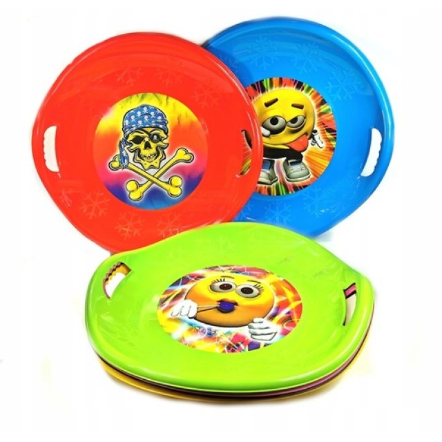 Produkts ir paredzēts patiesiem ātruma un neprātīgas jautrības uz sniega cienītājiem. Paredzēts bērniem no 3 gadu vecuma. Maksimālā slodze 50 kg. Izmēri: diametrs ~ 72 cm Svars: 0,62 kg Ražots Polijā.   Lietošanas instrukcija. Izstrādājums paredzētas izklaidei uz sniega. Izmantot tikai pieaugušā (aizbildņa) uzraudzībā. Aizbildnim jāizvēlas atbilstoši droši braukšanas apstākļi ar pietiekami biezu sniega kārtu. Māciet bērnam, kā lietot dēli un kā to pārvaldīt. Produkta kopšana: mazgāt tikai ar ūdeni, pievienojot parastos mazgāšanas līdzekļus bez abrazīviem elementiem. Neizmantojiet šķīdinātājus. Žāvējiet istabas temperatūrā prom no siltuma avotiem. BRĪDINĀJUMS: Šāda veida izklaides uz sniega ir bīstamas. Aizbildnim vienmēr jāievēro drošības prasības, kā arī bērnam jāvalkā atbilstoši aizsardzības līdzekļi (ķivere, cimdi, elkoņu un ceļu aizsargi). Pieaugušais ir atbildīgs par bērna drošību. Saglabājiet etiķeti/instrukciju, jo tajā ir svarīga informācija. BRĪDINĀJUMS: Produkts ir aprīkots ar virvi – pastāv nosmakšanas risks.