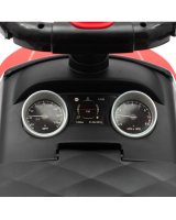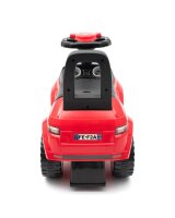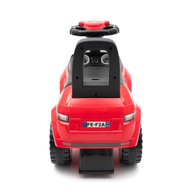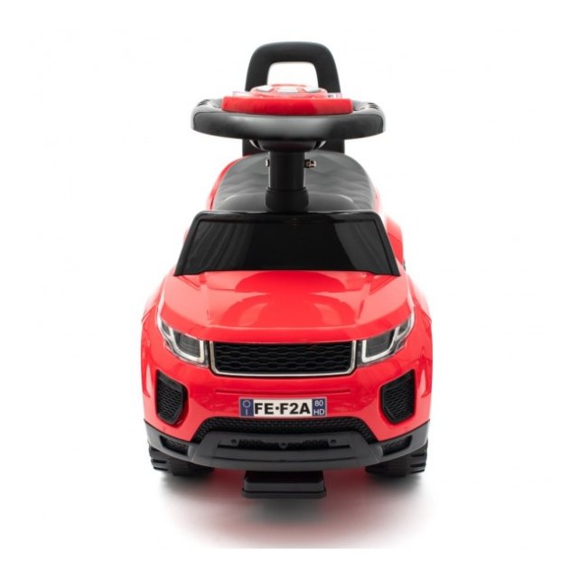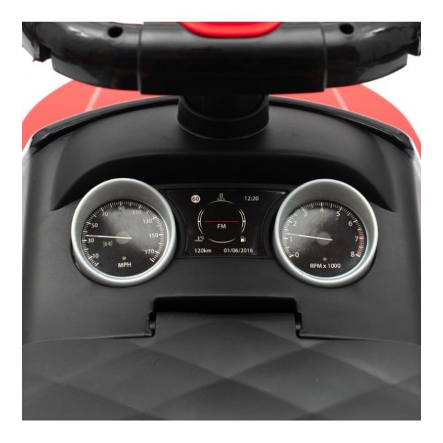 Mašinītei ir moderns dizains, un tā ir izgatavota no augstas kvalitātes plastmasas. Zem sēdekļa ir vieta rotaļlietām un citiem maziem priekšmetiem. Pogas uz stūres aktivizē dažādas melodijas.
