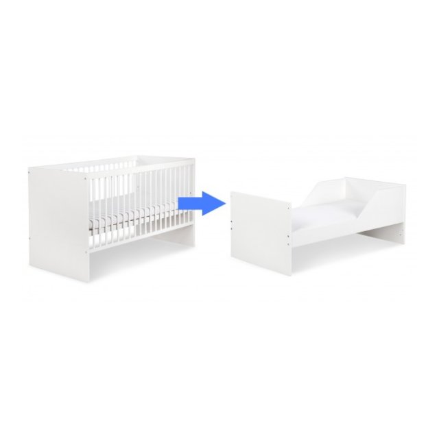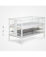 Noņemot sānus gultu var pārveidot par tahtas veida gultu vecākajam bērnam. Gultiņa izgatavota no priežu koka, kokskaidu un MDF plāksnēm. Trīs guļamvietas augstumi. Trīs izņemamas redeles sānā.  Izmērs : 140x70 cm  Ražots Polijā.