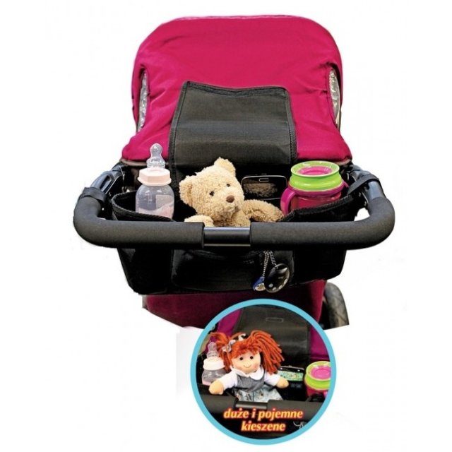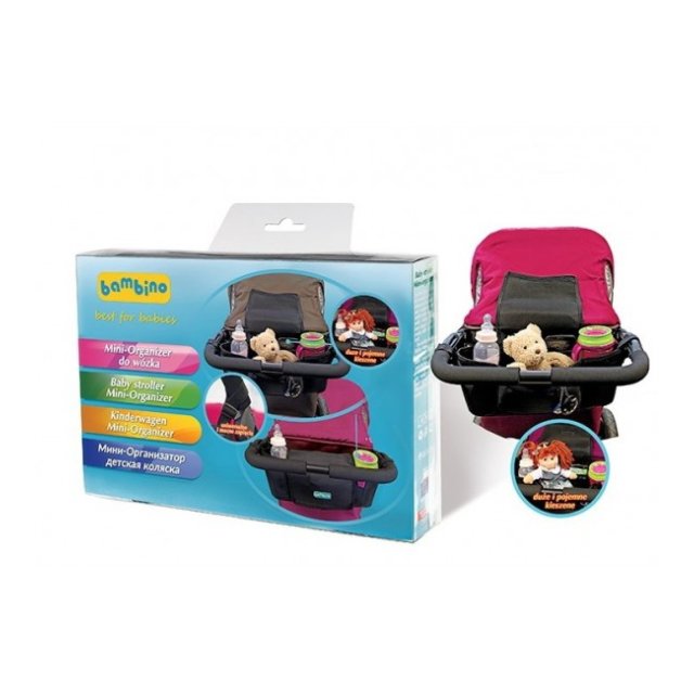 Mini-organaizeru var viegli un droši piestiprināt pie gandrīz jebkuriem ratiem. Organaizers nodrošina visu nepieciešamo lietu  ērtu uzglabāšanu pastaigas laikā. Organaizeram ir divi dzērienu turētāji, vidējā kabata lieliski noderēs uzkodām, autiņbiksītēm un citām nepieciešamajām lietām pastaigājoties vai iepērkoties. Garums ~ 35 cm