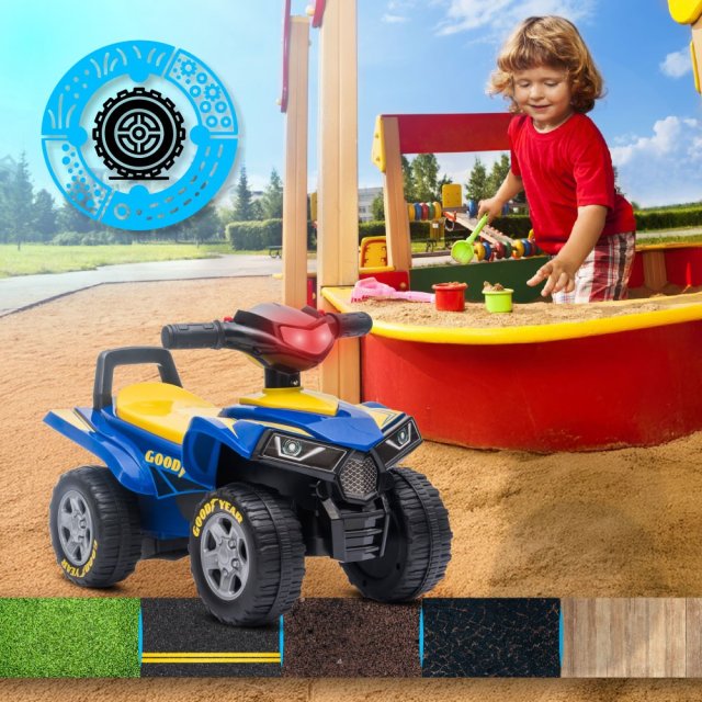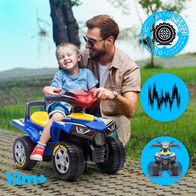 Mini kvadracikls — lieliska izklaide! Priekšējo lukturu plēsonīgais izskats, lielie bezceļu riteņi un ērts sēdeklis — laiks doties ceļā!