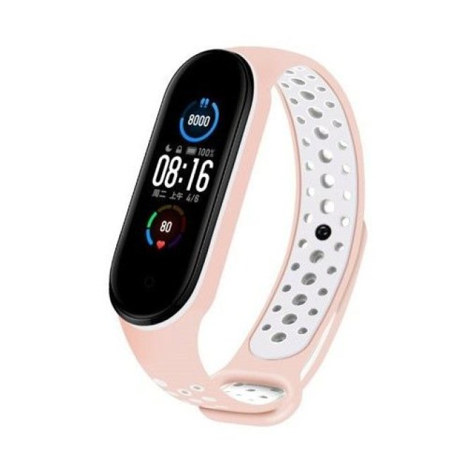 iLike Silicone Wristband Strap for Xiaomi Mi Band 5 Dots Pink White