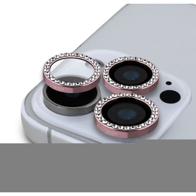 Guess Apple iPhone 16 Pro/16 Pro Max Fixed Glliter Protective Lens Pink