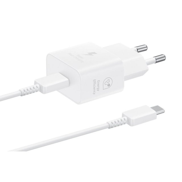 Samsung - EP-T2510XWE Samsung USB-C 25W Travel Charger + USB-C Data Cable White