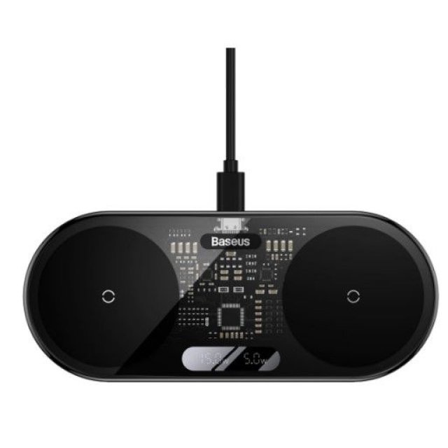Baseus Universal Digital LED Display dual wireless charger with digital display 20W Black