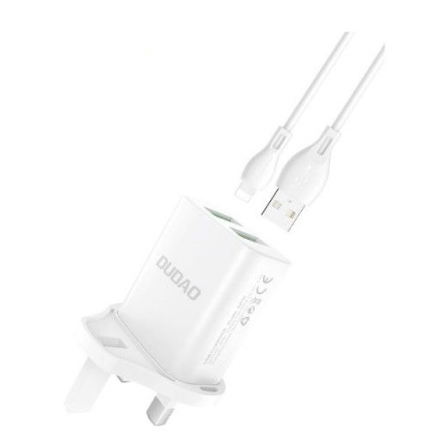 Dudao Wall charger UK plug (United Kingdom) 2xUSB-A 2.4A white + USB-A cable - Lightning White