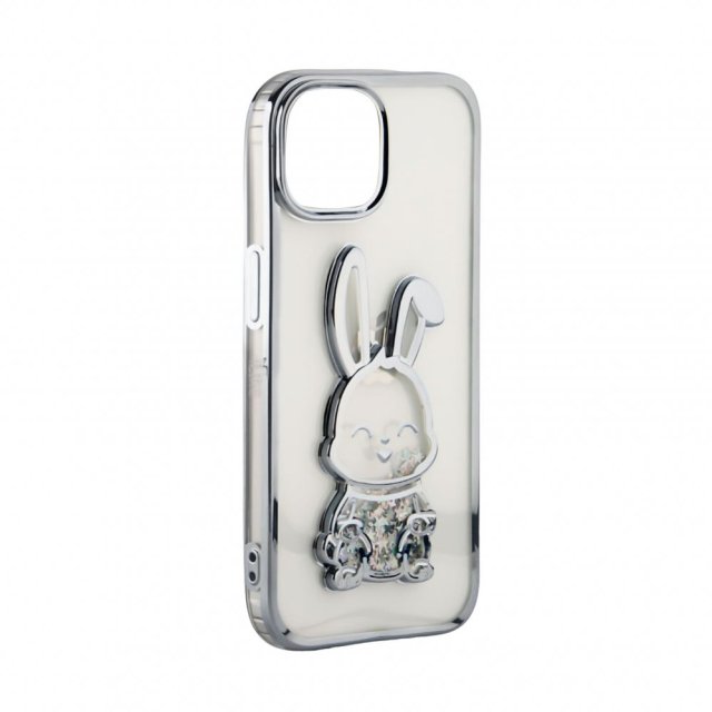 iLike Apple iPhone 15 Pro Silicone Case Print Desire Rabbit Silver