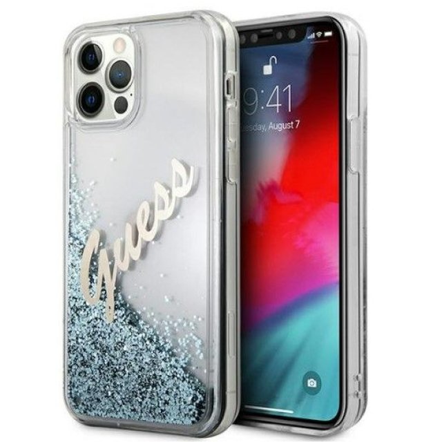 Guess Apple iPhone 12 Pro Max 6.7 hardcase Glitter Vintage Script Blue
