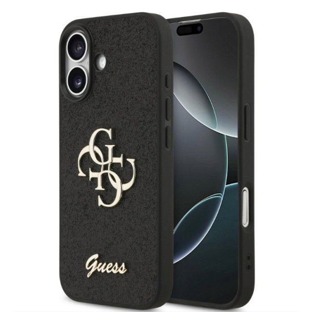 Guess Apple iPhone 17 PU Fixed Glitter 4G Metal Logo Case Black