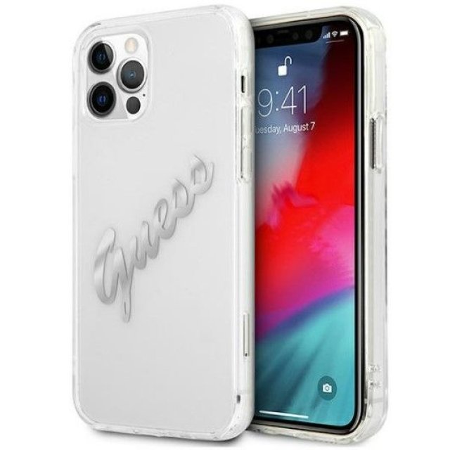 Guess Apple iPhone 12 Pro Max 6.7 hardcase Vintage Script Silver Transparent