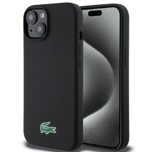 Lacoste Apple iPhone 15 6.1 Liquid Silicone Microfiber Croc Logo Magsafe Back Cover Black