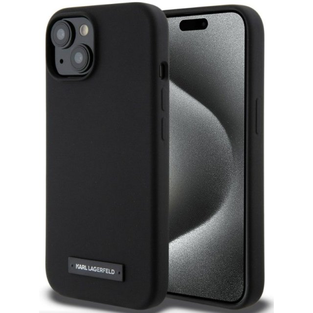 Karl Lagerfeld Apple iPhone 15 Liquid Silicone Plaque MagSafe Case Black