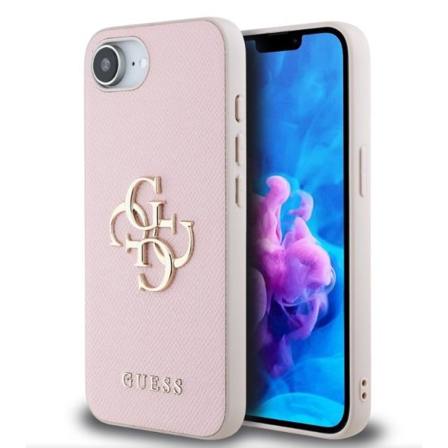 Guess Apple iPhone 16e PU Grained 4G Metal Logo Case Pink
