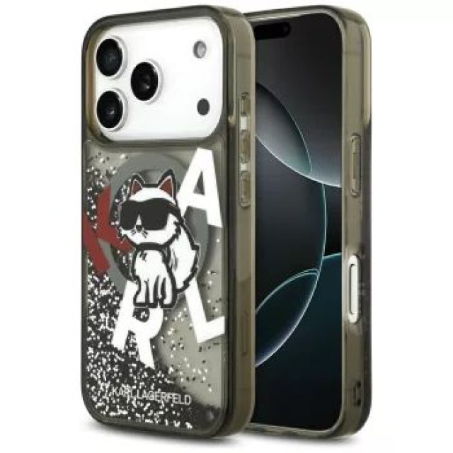 Karl Lagerfeld Apple iPhone 17 Pro Silicone case with MagSafe Liquid Glitter Choupette Logo Black