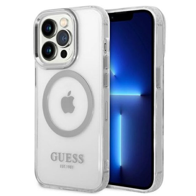 Guess Apple iPhone 14 Pro Max 6.7 hard case Metal Outline Magsafe Silver