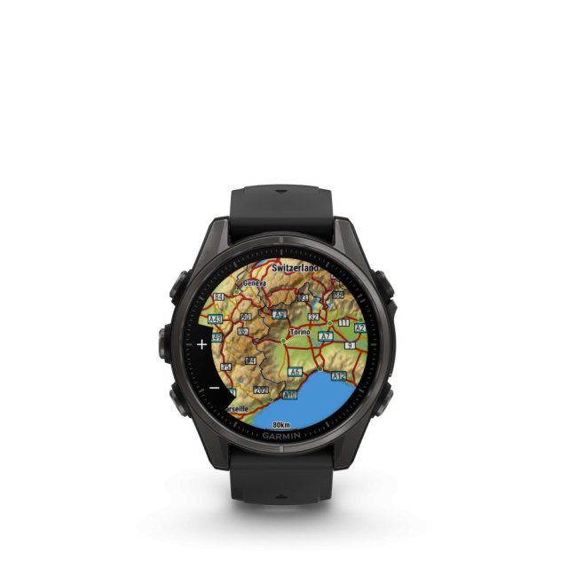 Garmin Fenix 8 – 43 mm, AMOLED Sapphire, Carbon grey DLC titanium with Black/pebble grey silicone band/ 010-02903-21