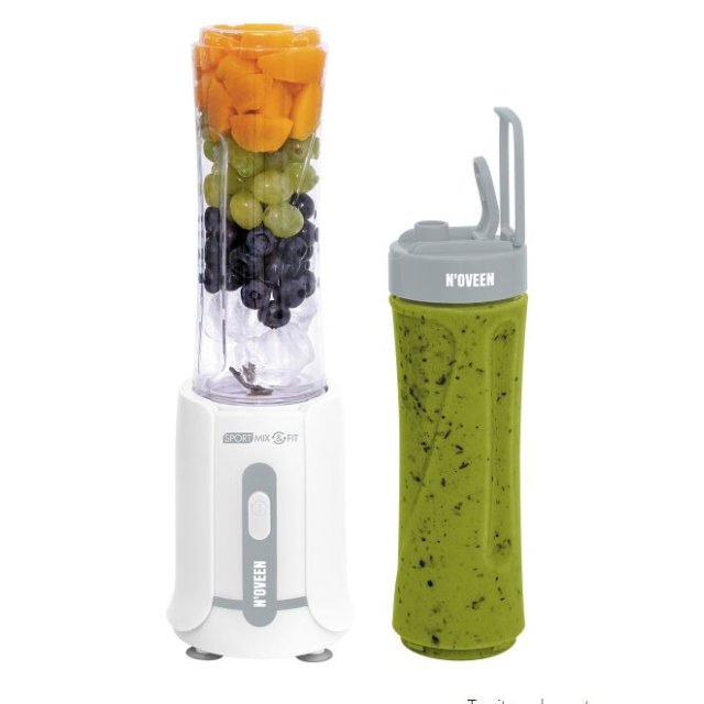 Noveen Blender 300W Ice Crushing Blades 2x600ml Bottles Non-Drip BPA-Free Grey