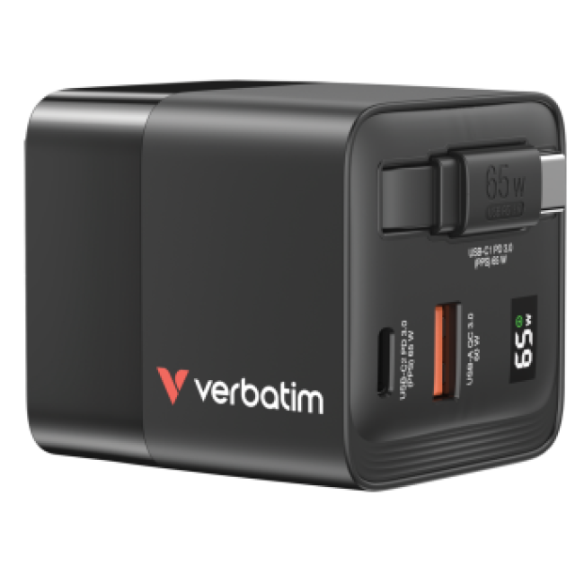 Lādētājs Verbatim GaN Wall Charger 65W 2 Port with Retractable Cable