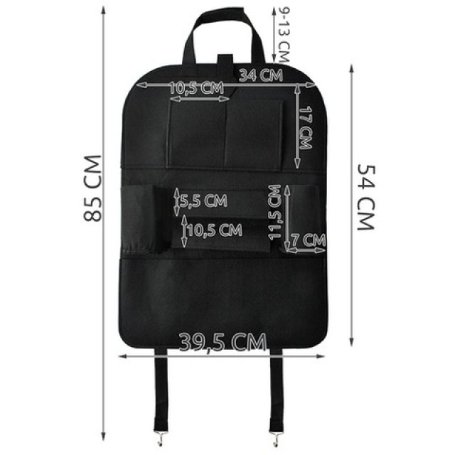 Ideāls risinājums, kas noderēs gandrīz katrā automašīnā. Automašīnas sēdekļa organaizers ļauj viegli sakārtot vissvarīgākās lietas jūsu automašīnā un ātri piekļūt tām, kad nepieciešams. Organaizeru var viegli uzstādīt gandrīz uz jebkura autokrēsliņa – stabils stiprinājums nodrošina, ka organaizers braukšanas laikā nenokritīs.