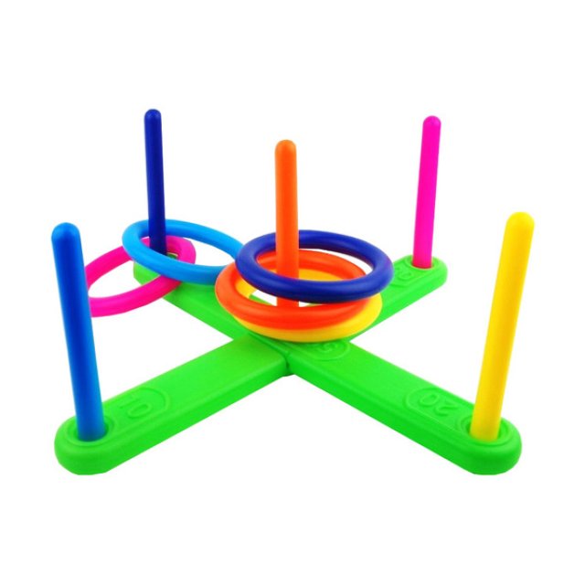 Pirms spēlēšanas salieciet krustveida pamatni un ievietojiet stieņus caurumos, kas apzīmēti ar gredzeniem.